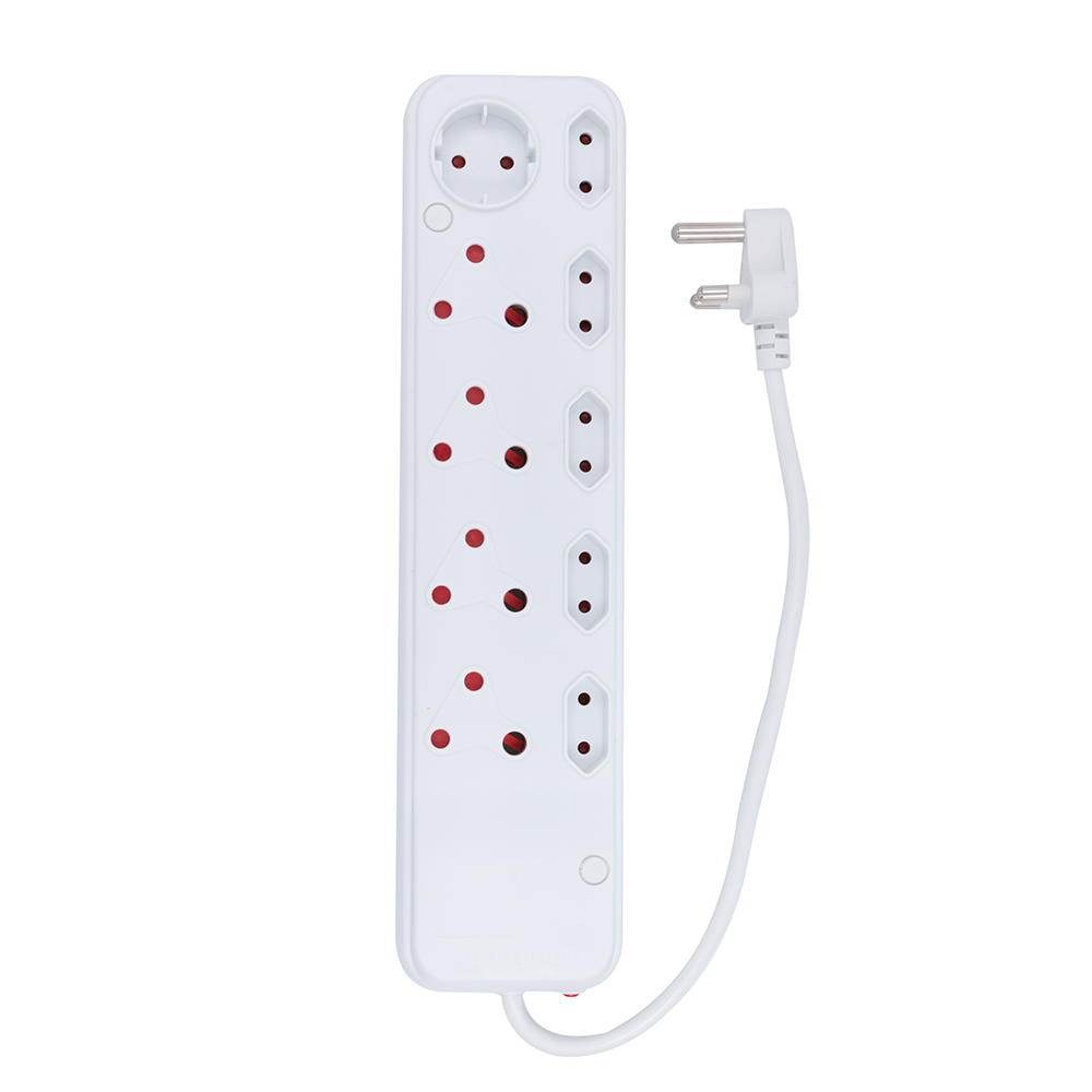 The Digitech 10 un-switched way mutliplug offers adaptions for Schuko, Euro and the 3 prong 16A plug points.